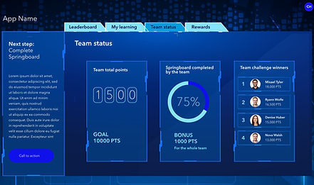 They wanted to create a leaderboard dashboard to show progress and scores between peers. The concept also included dashboards at individual levels to allow a rep to hit different ‘tiers’, or milestones, and through gamification between groups of people at similar stages of the learning journey. The reps will be able to compete on who has completed the most training or who has the best scores.